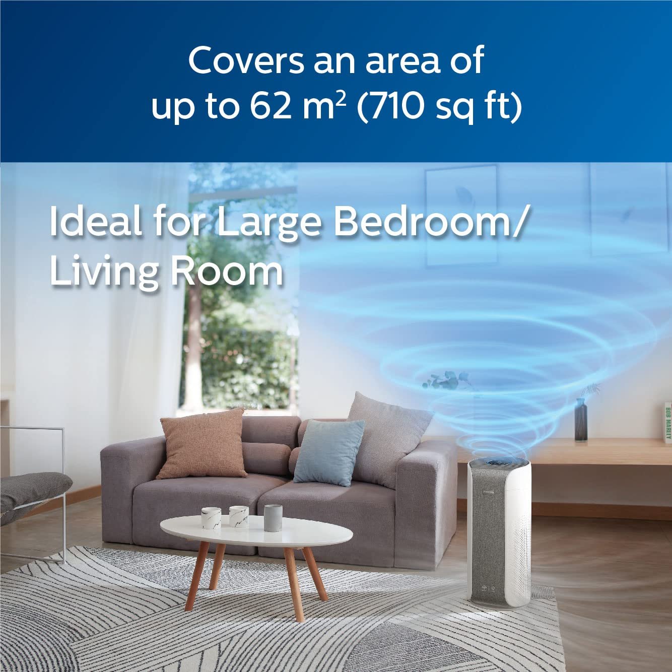 - INSTANT PURIFICATION: Air Purifier purifies 10m2 room in less than 3 minutes thanks to high particle clean air delivery rate (CADR) of 550m3/h. Effectively reduces indoor airborne pollutant levels on high AQI days every time. Also filters out formaldehyde gas. Can be used for rooms up to 62 sq mt. (710 sq. ft)